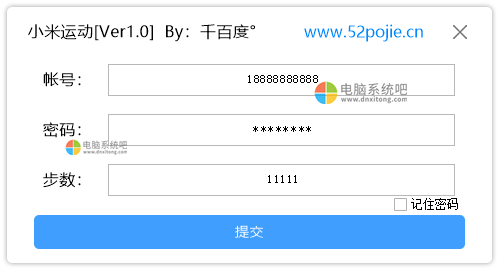 3.打开小工具,输入账号(手机号)密码和步数并提交。(由于时间仓促,暂支持大陆11位手机号)