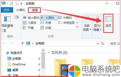 1、设置前,需要将电脑系统隐藏的文件夹显示出来,进入我的电脑,并在顶部的查看选项卡下,点击“选项”(部分电脑系统版本在文件→文件夹选项下);