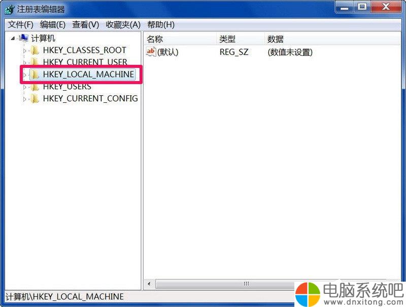 3、在注册表编辑器窗口,先从左侧选择[HKEY_CURRENT_USER]这一根键,点击前面的小三角,打开他的子键。
