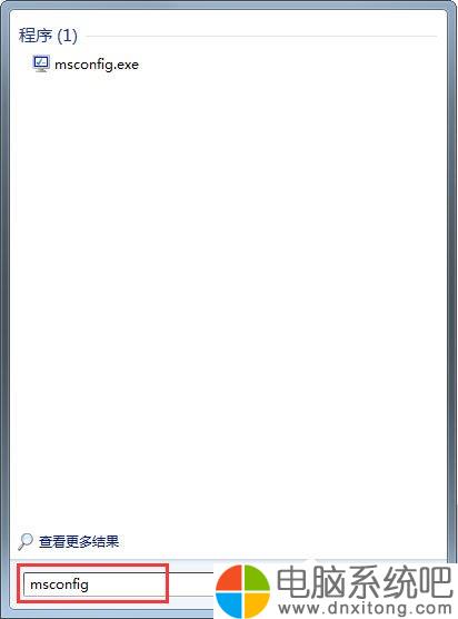 3、在“开始搜索”框中键入msconfig,然后按Enter;