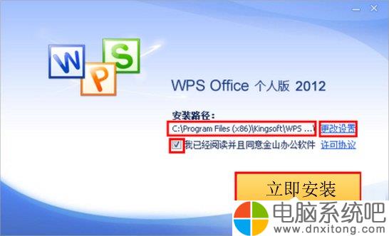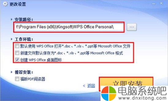 3、选择要安装WPS的位置,然后确认要选择的安装选项后,单击“立即安装”。