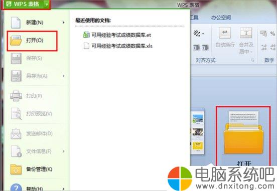 2、单击左上角的“WPS表格”后,单击“打开”,或者直接在中间单击“打开”。