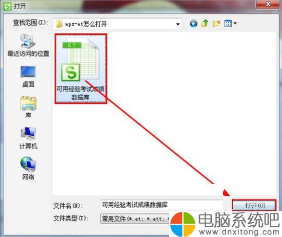 3、找到并双击et文件,或者单击选择et文件之后,单击“打开”。