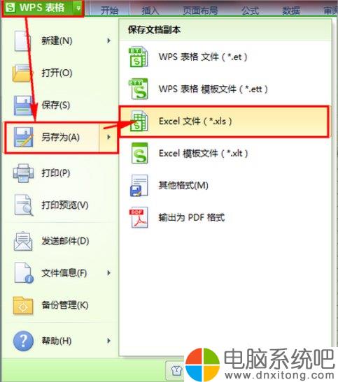 1、单击WPS表格左上角的“WPS表格”,然后鼠标指向“另存为”,单击“Excel文件(*.xls)”文件。
