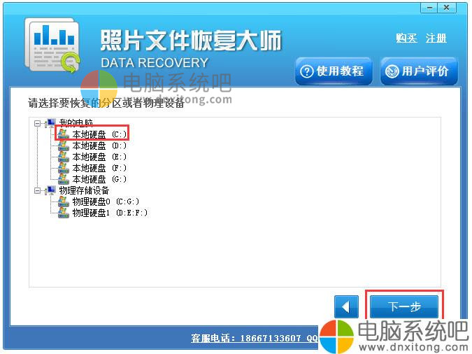 3、选择应用程序所在磁盘,单击下一步进行扫描;