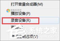 3、然后右键电脑右下角的小喇叭,点“录音设备”。