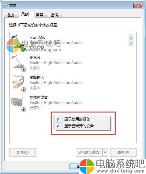 (1)语音模式。也就是普通说话模式。把“立体声混音”设为停用,把“麦克风”设为启用,默认设备。[如下图]