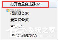 1、右键电脑小喇叭,点‘打开音量合成器’;