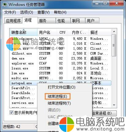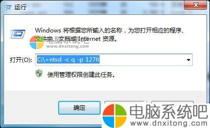 当在“任务管理器”中结束进程时提示“不能终止进程”的话,我们可以用“NTSD”命令强行终止进程,使用格式为:C:\>ntsd -c q -p 进程的PID值 即同时按下Win键和R键或者在“开始”菜单中,调出“运行”并输入“ntsd -c q -p 1276”即可,1276是记事本的进程PID。