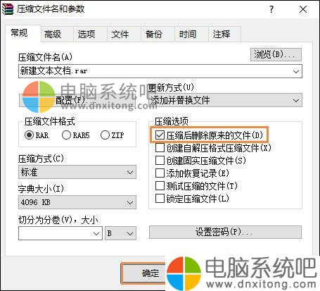 鼠标右键单击需要删除文件,在右键菜单中选择“添加到压缩文件”菜单,并且在弹出的对话框中勾选“压缩后删除源文件”,点击“确定”。这一步,WinRAR软件就可以在创建该压缩文件的同时,会把原文件删除。大家再把新创建的压缩文件删除,就可以达到同样的效果了。