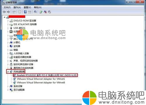 3、弹出的设备管理器窗口下展开网络适配器,双击打开网卡;
