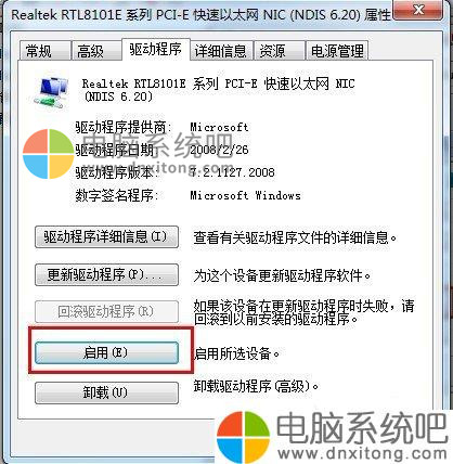 5、我们会发现“禁用”项变成了“启用”,最后点击“启用”按钮,单击“确定”,关闭设备管理器窗口。