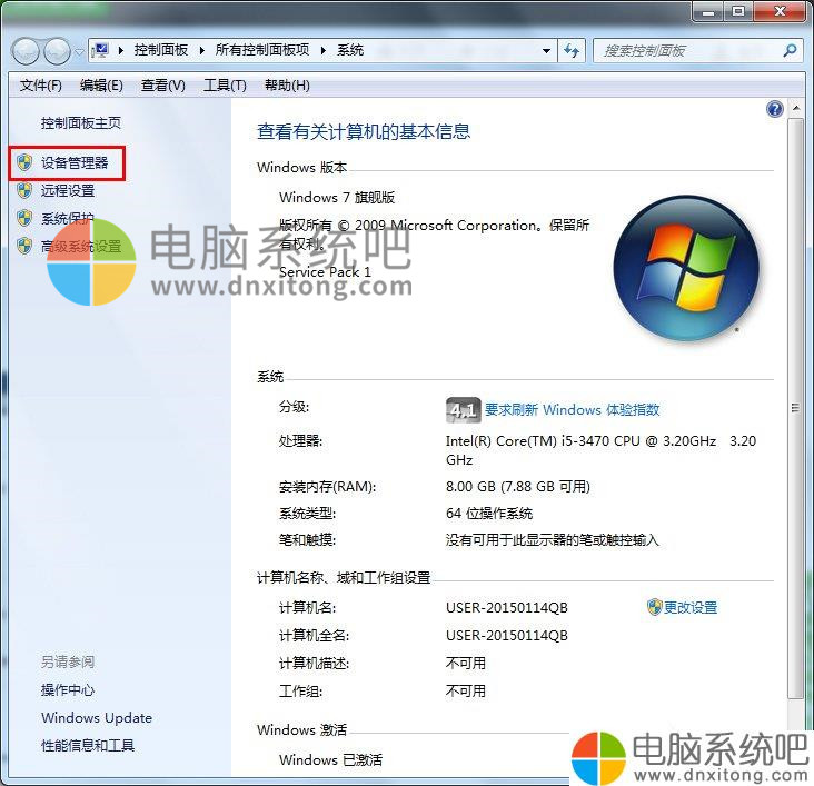 2、在控制面板主页栏中单击“设备管理器”命令;