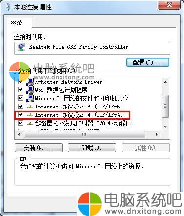 3、在此连接使用下列项目列表中双击“Internet 协议版本 4 (TCP/IPv4)”;
