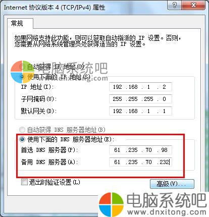 9、将其填进刚才使用下面的 DNS 服务器地址的对话框中;