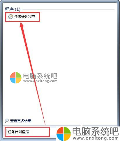 1、点击开始菜单,在下方搜索栏输入“任务计划程序”;