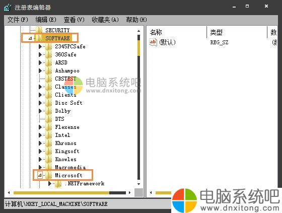 3、找到“Microsoft”,点击左边“小三角”找到“Windows”,如图;