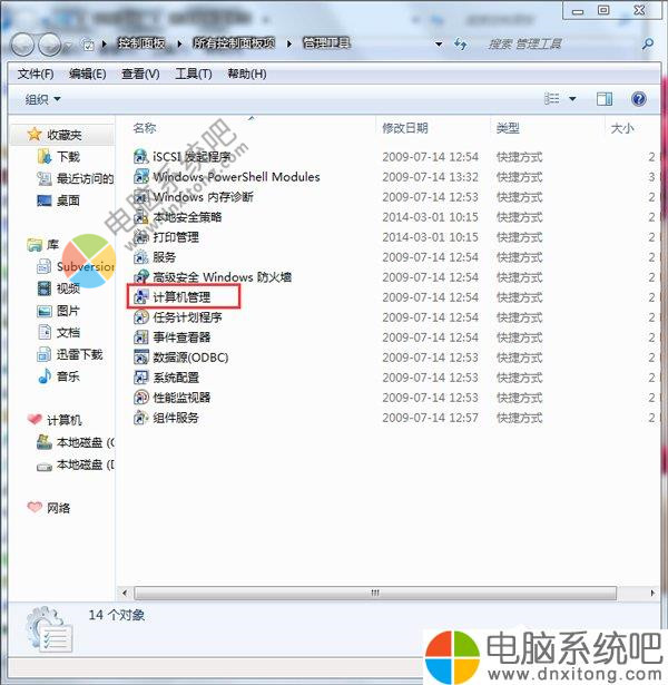 二、打开管理工具后,我们双击打开”计算机管理“。如下图所示: