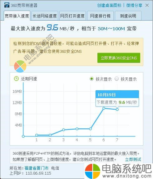1、网速太慢也会导致电脑打开网页太慢,这种情况的排查方法可通过测速软件测试网速,如果网速不够理想,可找当地网络运营商增大网络带宽。