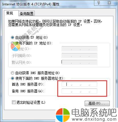 3、当其中一个DNS无法正常通过“Ping”命令访问时,我们可以尝试更改其它DNS。有关DNS地址的具体信息,大家可以咨询当地电信运营商并从其获取。然后将有效DNS输入到IP协议中并作为首选DNS。