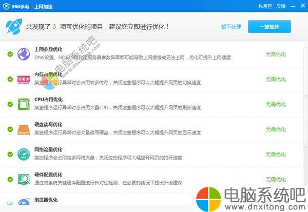 6、另外,导致电脑无法正常Ping DNS的一大重要原因与电脑系统有关,建议对电脑系统进行全盘杀毒处理,或者重要安装一下操作电脑系统,这对于提高对DNS的访问具有重要的作用。或者使用网络优化等相关程序对网络进行优化也是比较有效的方法。