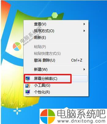 1、右击“桌面”,从弹出的菜单中选择“屏幕分辨率”项进入。