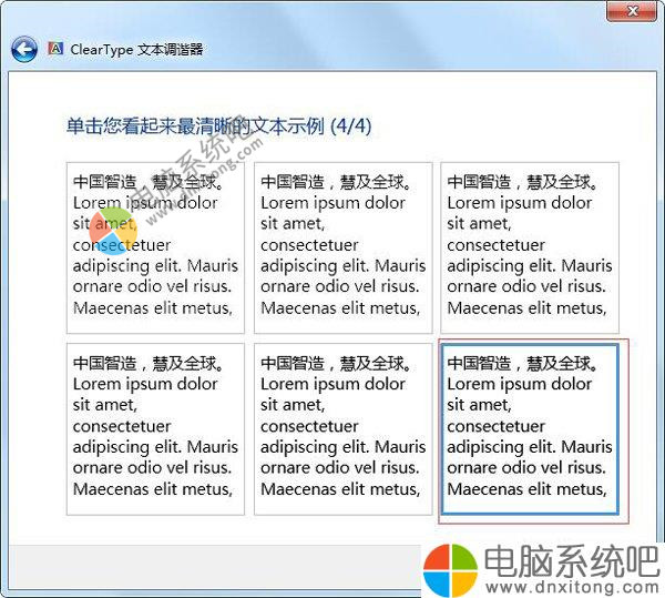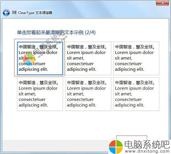 5、按照屏幕提示,点击“认为清晰的文本示例”。