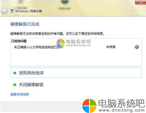 4、又是电脑系统提示无法修复,但是其实我们的问题已经解决了,再次进行连接即可。