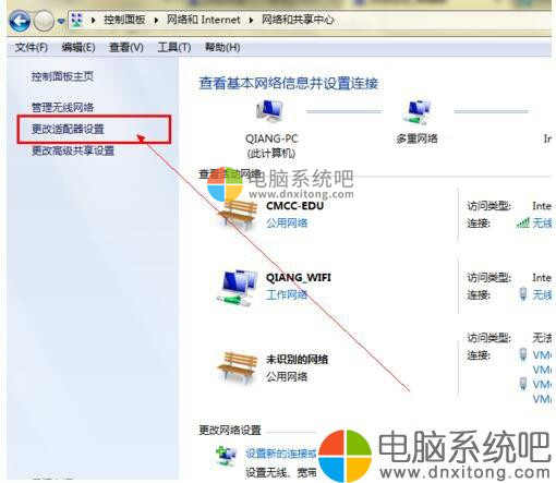 同样打开我们的网络共享中心,在左侧有一个管理适配器的选项,单击进入。