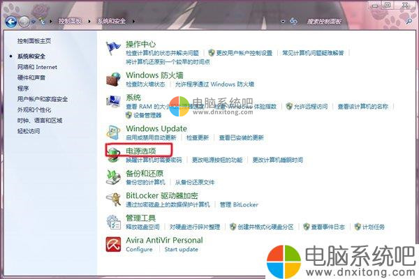 1.选择电脑系统和安全。