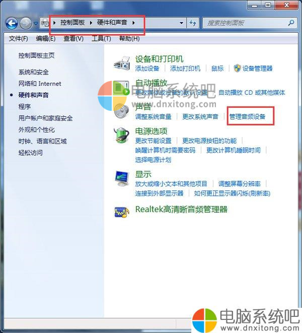 3、部分音响出现“电源”等噪音现象是由于软件设置不当所造成的。对此,我们可以采取以下方法来解决:打开“控制面板”,点击“声音和音频”-》“管理音频设备”项进入。