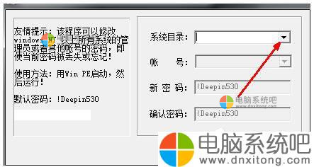 5、如图所示,这个工具即可以修改电脑系统的密码,在箭头所指的地方选择你的电脑系统文件的目录。