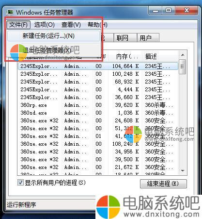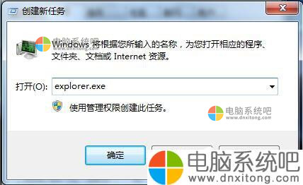 3、Ctrl+Alt+Delete或者右键点击任务栏—启动任务管理器—文件——新建任务—在弹出的对话框内输入“ explorer.exe”确定,这样资源管理器就能重新工作了。