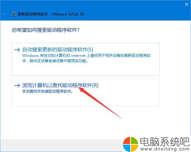 4、接下来我们选择“浏览我的计算机以查找驱动程序软件”一项,然后选择本地的计算机的驱动程序就可以了。如果你没有驱动程序的话,也可以使用安装驱动程序的软件来安装显卡的驱动程序。