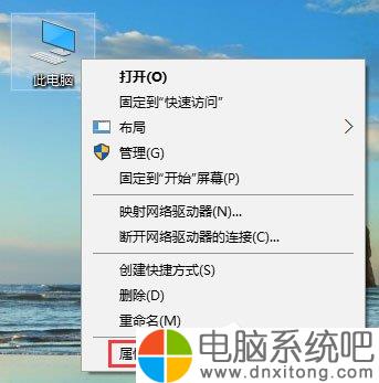1、在Windows10桌面,右键点击桌面上的“此电脑”图标,在弹出菜单中选择“属性”菜单项。