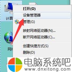 4、删除完毕,回到桌面,右键点击【计算机】选择【设备管理器】选项打开;