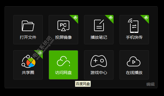 安装好爱奇艺万能联播之后,打开软件会在首页看见一个 访问网盘 选项,我们可以点击访问网盘并且登陆自己的百度网盘账号。