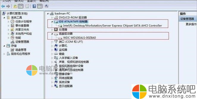 6、这时再到设置管理器中查看IED ATA/ATAPI控制器显示状态,已经认出主板AHCI驱动,而不是IDE模式了。