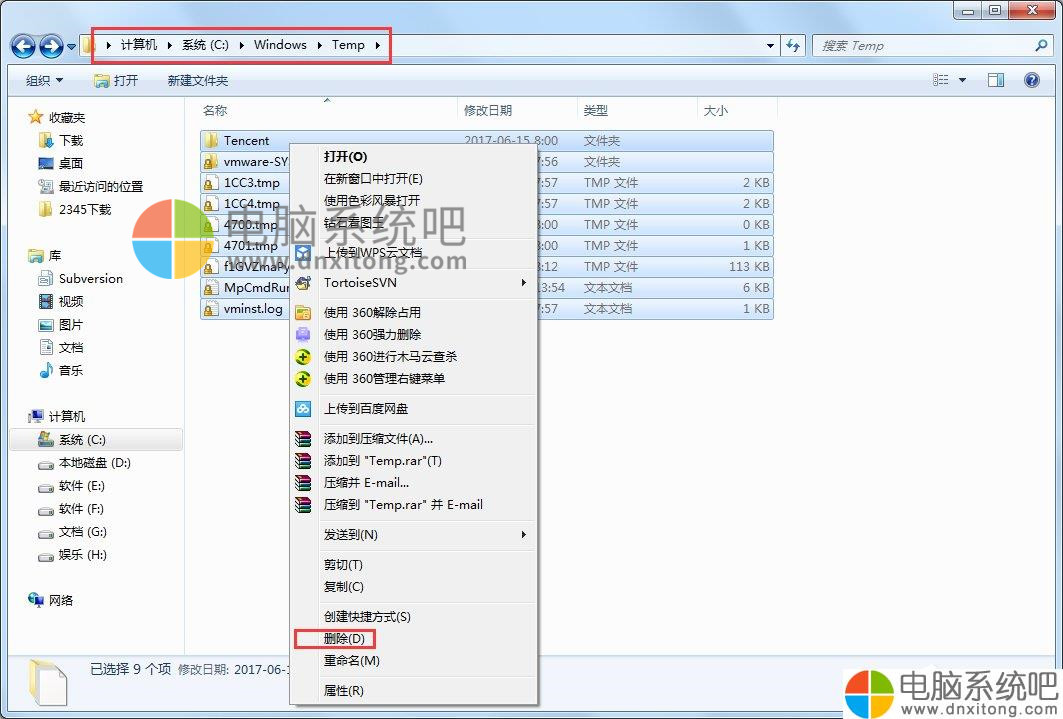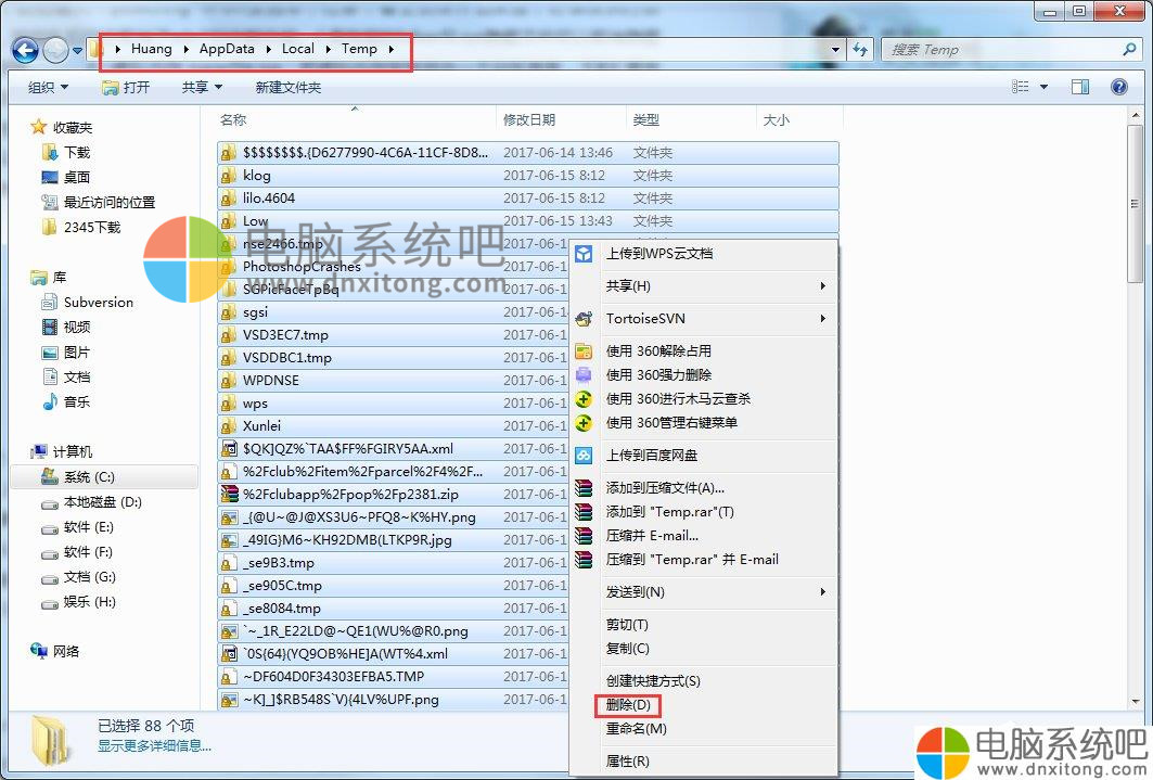 4、直接把C:/windows/temp和C:/Users/你的用户名/AppData/Local/Temp文件夹中的文件通通删除。