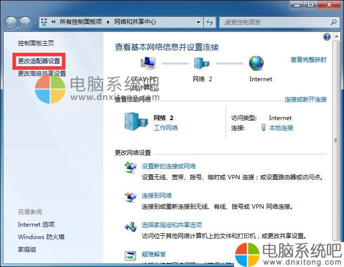 2、在打开的窗口中,点击“更改适配器设置”按钮。