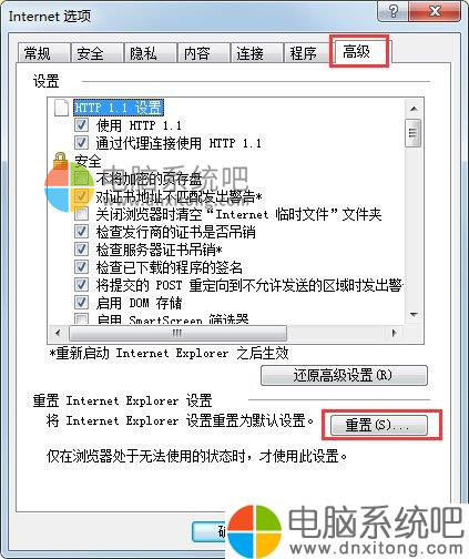 2、选择【高级】,点击【重置】,然后勾选【删除个性化设置】,点击【重置】,后续按提示操作即可。