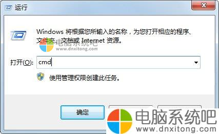 1、使用快捷键“Win+R”弹出【运行】,输入“cmd”,点击【确定】;
