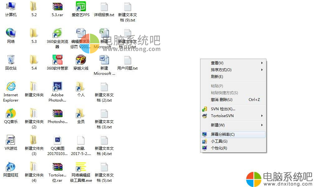 2、现在开始解决吧,桌面右击,选择分辨率。(XP电脑系统为右击-选择属性)