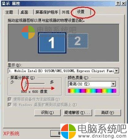 3、如图,将分辨率用鼠标拉到最高。(XP电脑系统需切换到设置选项卡)