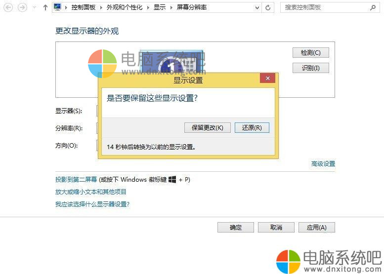 4、点击保存,屏幕会闪一下,见证奇迹的时刻到了-屏幕是不是瞬间清晰了!别忘了,再点击一下保存更改。看看更改之后的效果,跟之前对比很明显。