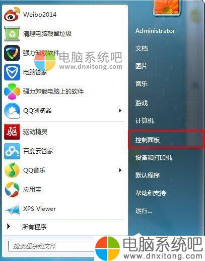 1、点击开始按钮,然后点击控制面板;