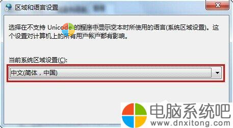 6、重启电脑后,将当前电脑系统区域设置设置成中文(简体,中国),然后再点击确定按钮,最后再重启电脑。