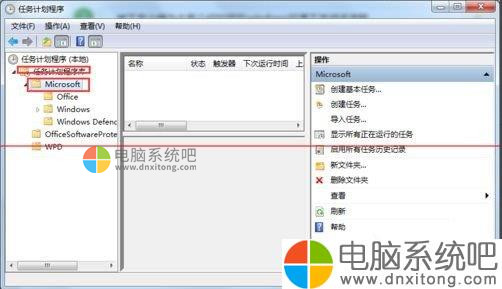 3、接着会弹出【任务计划程序】对话框,在对话框中双击【任务计划程序库】,接着在【任务程序计划库】下方双击【Microsoft】,然后双击【Widows】。