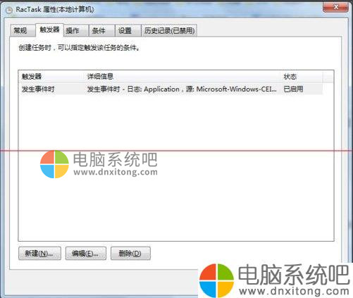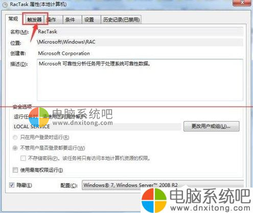 5、接着双击【RacTask】,此时电脑系统会出现弹出一个【RacTask属性】对话框,在对话框中点击【触发器】。