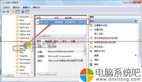 4、接着双击在【Widows】下方出现的【RAC】文件夹,此时在对话框中间会出现一个叫RACTask的。